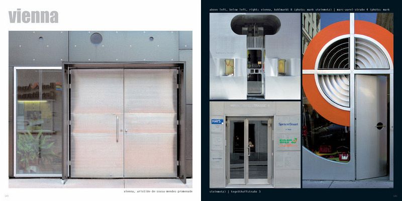 Der Band Doors bietet dem Leser überraschende Perspektiven auf die Metropolen Europas. Dabei stehen nicht bedeutende Bauwerke in ihrer Gesamtheit im Vordergrund, sondern ihre originellen und außergewöhnlichen architektonischen Details. Das Buch präsentiert Türen aller Epochen und Baustile. Ob Neues, Altes, Schönes oder Skurriles hier findet man ein architektonisches Kaleidoskop der besonderen Art.