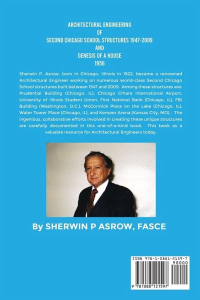 Sherwin P. Asrow, born in Chicago, Illinois in 1922, became a renowned Architectural Engineer working on numerous world-class Second Chicago School structures built between 1947 and 2009. Among these structures are Prudential Building (Chicago, IL), Chicago O'hare International Airport, University of Illinois Student Union, First National Bank (Chicago, IL), FBI Building (Washington, D.C.), McCormick Place on the Lake (Chicago. IL), Water Tower Place (Chicago. IL). and Kemper Arena (Kansas City. MO). The ingenious, collaborative efforts involved in creating these unique structures are carefully documented in this one-of-a-kind book. This book as a valuable resource for Architectural Engineers today.