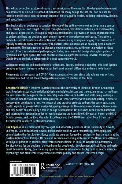 This edited collection explores disease transmission and the ways that the designed environment has promoted or limited its spread. It discusses the many design factors that can be used for infection and disease control through lenses of history, public health, building technology, design, and education.