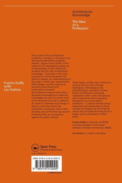 These essays, written over a third of a century during a time of huge ideological, technological and methodological upheaval, witness British architecture's unceasing negotation with a vast and rigorous set of constraints and its eventual emergence as a truly modern profession - a special interest group responsive and answerable to social changes but shaped and informed by values and principles that may be on a longer cycle and perhaps a loftier plane. The backdrop to this debate is the term of presidency of the RIBA held by Francis Duffy, Chairman of DEGW, UK, between 1993 and 1995. During this period the architectural profession faced major challenges and threats. The book looks at the relationship between the architectural profession and the built environment in the context of the great political and social cycles in the British post-war period. Francis Duffy's writings provide additional insights and viewpoints to the subject.
