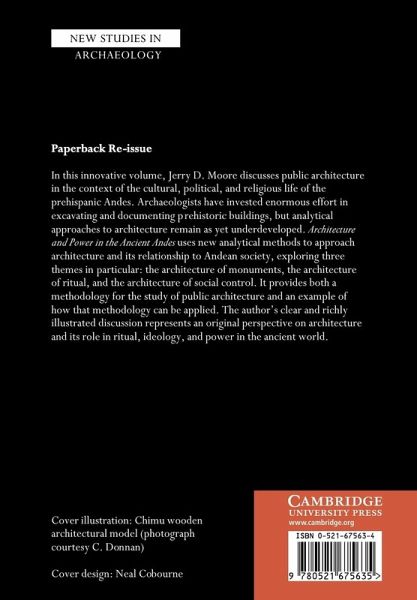 In this innovative volume, Jerry D. Moore discusses public architecture in the context of the cultural, political and religious life of the pre-hispanic Andes. Archaeologists have invested enormous effort in excavating and documenting prehistoric buildings, but analytical approaches to architecture remain as yet undeveloped. Architecture and Power in the Ancient Andes uses new analytical methods to approach architecture and its relationship to Andean society, exploring three themes in particular: the architecture of monuments, the architecture of ritual, and the architecture of social control. It provides both a methodology for the study of public architecture and an example of how that methodology can be applied. Jerry D. Moore's clear and richly illustrated discussion represents an original perspective on architecture and its role in ritual, ideology, and power in the ancient world.