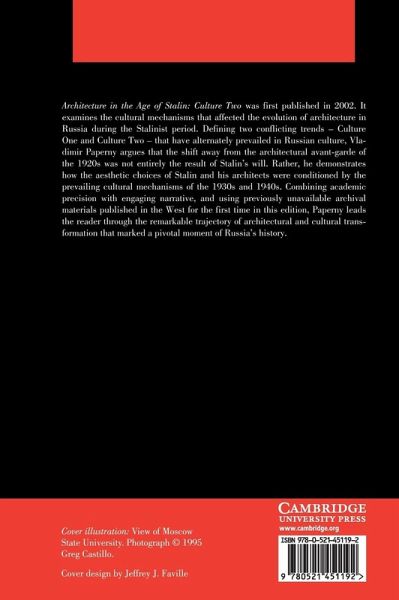 Architecture in the Age of Stalin: Culture Two examines the cultural mechanisms that affected the evolution of architecture in Russia during the Stalinist period. Defining two conflicting trends - Culture One and Culture Two - that have alternately prevailed in Russian culture, Vladimir Paperny argues that the shift away from the architectural avant-garde of the 1920s was not entirely the result of Stalin's will. Rather, he demonstrates how the aesthetic choices of Stalin and his architects were conditioned by the prevailing cultural mechanisms of the 1930s and 1940s. Combining academic precision with engaging narrative, and using previously unavailable archival materials published in the West for the first time in this edition, Paperny leads the reader through the remarkable trajectory of architectural and cultural transformation that marked a pivotal moment of Russia's history.