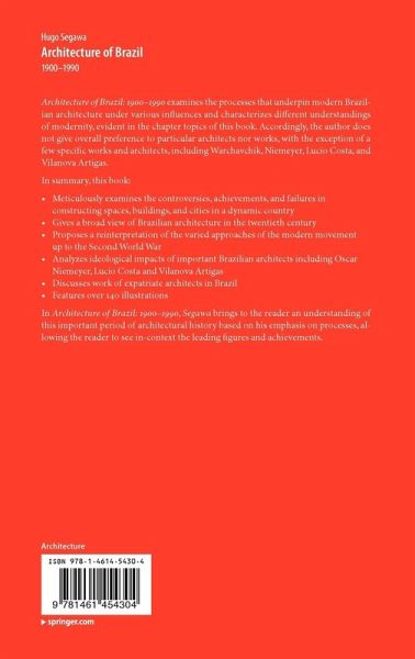 Architecture of Brazil: 1900-1990 examines the processes that underpin modern Brazilian architecture under various influences and characterizes different understandings of modernity, evident in the chapter topics of this book. Accordingly, the author does not give overall preference to particular architects nor works, with the exception of a few specific works and architects, including Warchavchik, Niemeyer, Lucio Costa, and Vilanova Artigas.