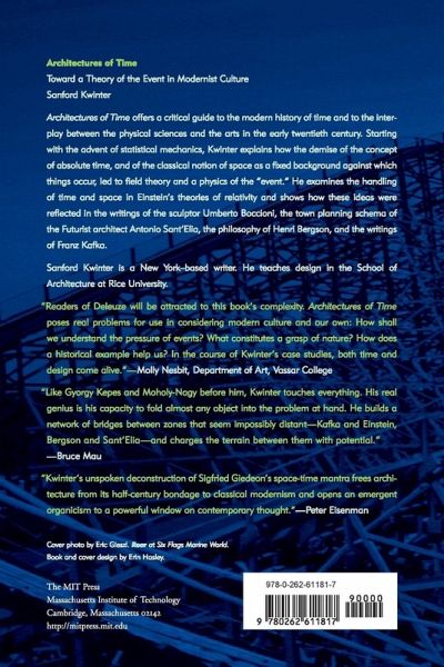 An exploration of twentieth-century conceptions of time and their relation to artistic form. In Architectures of Time, Sanford Kwinter offers a critical guide to the modern history of time and to the interplay between the physical sciences and the arts. Tracing the transformation of twentieth-century epistemology to the rise of thermodynamics and statistical mechanics, Kwinter explains how the demise of the concept of absolute time, and of the classical notion of space as a fixed background against which things occur, led to field theory and a physics of the "event." He suggests that the closed, controlled, and mechanical world of physics gave way to the approximate, active, and qualitative world of biology as a model of both scientific and metaphysical explanation. Kwinter examines theory of time and space in Einstein's theories of relativity and shows how these ideas were reflected in the writings of the sculptor Umberto Boccioni, the town planning schema of the Futurist architect Antonio Sant'Elia, the philosophy of Henri Bergson, and the writings of Franz Kafka. He argues that the writings of Boccioni and the visionary architecture of Sant'Elia represent the earliest and most profound deployments of the concepts of field and event. In discussing Kafka's work, he moves away from the thermodynamic model in favor of the closely related one of Bergsonian duree, or virtuality. He argues that Kafka's work manifests a coherent cosmology that can be understood only in relation to the constant temporal flux that underlies it.