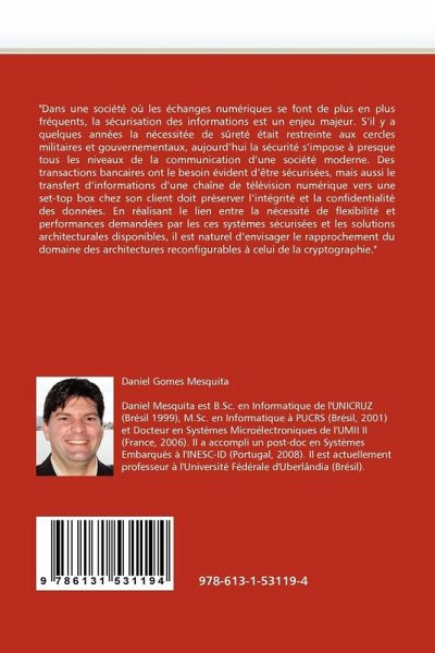 "Dans une société où les échanges numériques se font de plus en plus fréquents, la sécurisation des informations est un enjeu majeur. S'il y a quelques années la nécessitée de sûreté était restreinte aux cercles militaires et gouvernementaux, aujourd'hui la sécurité s'impose à presque tous les niveaux de la communication d'une société moderne. Des transactions bancaires ont le besoin évident d'être sécurisées, mais aussi le transfert d'informations d'une chaîne de télévision numérique vers une set-top box chez son client doit préserver l'intégrité et la confidentialité des données. En réalisant le lien entre la nécessité de flexibilité et performances demandées par les ces systèmes sécurisées et les solutions architecturales disponibles, il est naturel d'envisager le rapprochement du domaine des architectures reconfigurables à celui de la cryptographie."