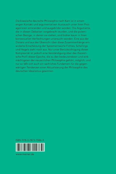 Die klassische deutsche Philosophie nach Kant ist in einem engen Kontakt und argumentativen Austausch unter ihren Protagonisten entstanden und ausgebildet worden. Die Argumente, die in diesen Debatten vorgebracht wurden, und die polemischen Bezüge, in denen sie stehen, sind bisher kaum in ihren kontextuellen Verflechtungen untersucht worden. Eine aus der Distanz und aus der Übersicht über diese Zusammenhänge entwickelte Einschätzung der Systementwürfe Fichtes, Schellings und Hegels steht noch aus. Nur unter Berücksichtigung dieser Komplexität ist jedoch eine Verständigung über das theoretische Profil dieser Epoche, die zu den bedeutendsten und wirkmächtigsten der neuzeitlichen Philosophie gehört, möglich, und nur so läßt sich auch ein sachliches Fundament für die gegenwärtigen Tendenzen einer Aktualisierung der Philosophie des deutschen Idealismus gewinnen.