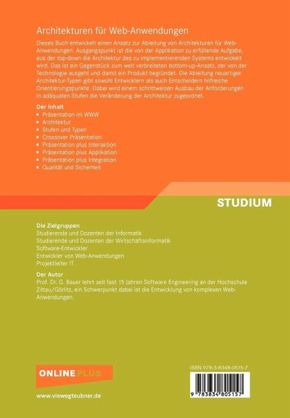 Dieses Buch entwickelt einen Ansatz zur Ableitung von Architekturen für Web-Anwendungen. Ausgangspunkt ist die von der Applikation zu erfüllende Aufgabe, aus der top-down die Architektur des zu implementierenden Systems entwickelt wird. Das ist ein Gegenstück zum weit verbreiteten bottom-up-Ansatz, der von der Technologie ausgeht und damit ein Produkt begründet. Die Ableitung neuartiger Architektur-Typen gibt sowohl Entwicklern als auch Entscheidern hilfreiche Orientierungspunkte. Dabei wird einem schrittweisen Ausbau der Anforderungen in adäquaten Stufen die Veränderung der Architektur zugeordnet.