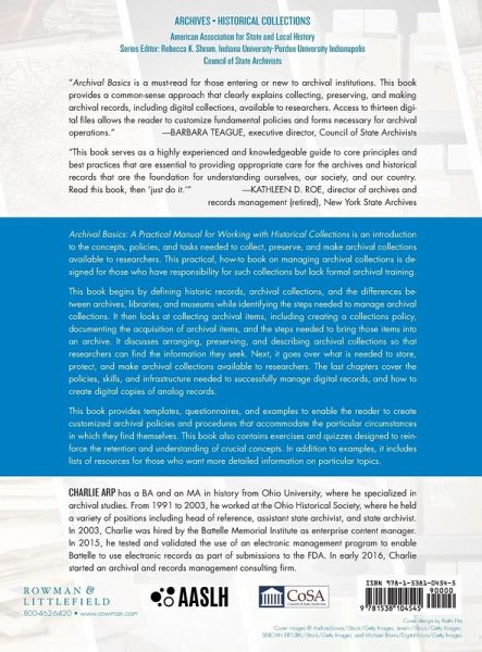 This book is an introduction to the concepts, policies, infrastructure and tasks needed to collect, preserve and make archival collections available to researchers. The book provides the practical information necessary to manage archival collections for those who do not have a formal education in archival work.