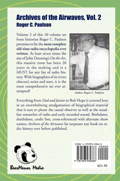 Archives of the Airwaves, Vol. 2 Roger C. Volume 1 of this 10 volume set from historian Roger C. Paulson promises to be the most complete old-time radio encyclopedia ever written. At least seven times the size of John Dunning's On the Air, this massive tome has been 20 years in the making and is a MUST for any fan of radio history. With biographies of its (even obscure) series and stars, it is the most comprehensive set ever attempted! Everything from Dad and Junior to Bob Hope is covered here in an overwhelming amalgamation of biographical material that is sure to please the casual observer as well as the steadfast researcher of radio and early recorded sound. Birthdates, deathdates, credit lists, cross-referenced with alternate show names, Archives of the Airwaves far surpasses any book on radio history ever before published.
