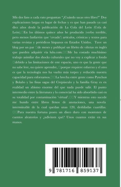 In this collection of short stories the author covers a full array of topics from semi biographical adventures in Mexico to the plight of the immigrants.