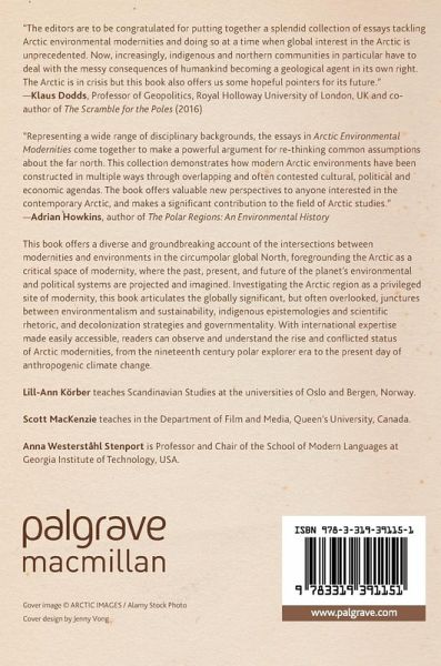 Introduction: Arctic Environmental Modernities from the Age of Exploration to the Era of the Anthropocene by Lill-Ann Körber, Scott MacKenzie, and Anna Westerståhl Stenport.- 1. The Disappearing Arctic?: Scientific Narrative, Environmental Crisis, and the Ghosts of Colonial History by Andrew Stuhl.- 2. Petro-Images of the Arctic and Statoil's Visual Imaginary by Synnøve Marie Vik.- 3. Urbanity Without Cities: Arctic Modernization in Northern Scandinavia by Torill Nyseth.- 4. Cod Society: The Technopolitics of Modern Greenland and the Creation of an Arctic Welfare State by Kristian Hvitfeldt Nielsen.- 5. Space and Literary History in Arctic Norway: Knut Hamsun in Lule Sámi Nordlándda by Kikki Jernsletten and Troy Storfjell.- 6. The Polar Hero's Progress: Fridtjof Nansen, Spirituality, and Environmental History by Mark Safstrom.- 7. Heritage, Conservation, and the Geopolitics of Svalbard by Dag Avango and Peder Roberts.- 8. Toxic Blubber and Seal Skin Bikinis, Or: How Green is Greenland?Ecology in Contemporary Film and Art by Lill-Ann Körber.- 9. The Negative Space in the National Imagination: Russia and the Arctic by Lilya Kaganovsky.- 10. Invisible Landscapes: Extreme Oil and the Arctic in Experimental Film and Activist Art Practices by Lisa E. Bloom.- 11. Icelandic Futures: Arctic Dreams and Geographies of Crisis by Anne-Sofie Nielsen Gremaud.- 12. Feminist and Environmentalist Public Governance in the Arctic by Eva-Maria Svensson.- 13.The Greenlandic Reconciliation Commission: Ethnonationalism, Arctic Resources, and Post-Colonial Identity by Kirsten Thisted.- 14. Arctic Futures and Global Assessment Policy by Nina Wormbs and Sverker Sörlin.