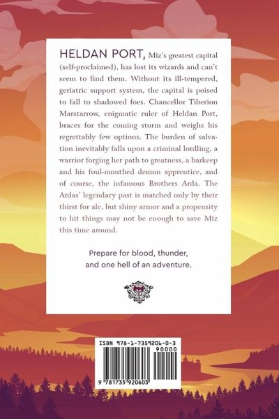 Heldan Port, Miz's greatest capital (self-proclaimed), has lost its wizards and can't seem to find them. Without its ill-tempered, geriatric support system, the capital is poised to fall to shadowed foes. Chancellor Tiberion Marstarrow, enigmatic ruler of Heldan Port, braces for the coming storm and weighs his regrettably few options. The burden of salvation inevitably falls upon a criminal lordling, a warrior forging her path to greatness, a barkeep and his foul-mouthed demon apprentice, and of course, the infamous Brothers Arda. The Ardas' legendary past is matched only by their thirst for ale, but shiny armor and a propensity to hit things may not be enough to save Miz this time around. Prepare for blood, thunder, and one hell of an adventure.