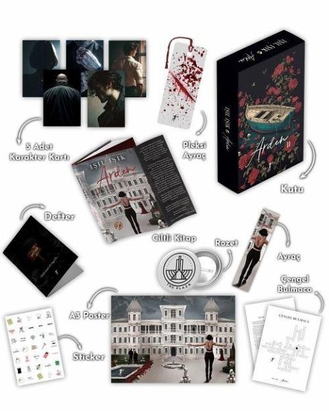 Kutu Icerigi Ciltli Kitap 5 Adet Karakter Karti Pleksi Ayrac Defter Poster Ayrac Rozet Cengel Bulmaca Sticker Seti