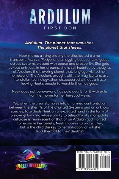Ardulum. The planet that vanishes. The planet that sleeps. Neek makes a living piloting the dilapidated tramp transport, Mercy's Pledge, and smuggling questionable goods across systems blessed with peace and prosperity. She gets by-but only just. In her dreams, she is still haunted by thoughts of Ardulum, the traveling planet that, long ago, visited her homeworld. The Ardulans brought with them agriculture, art, interstellar technology...then disappeared without a trace, leaving Neek's people to worship them as gods. Neek does not believe-and has paid dearly for it with exile from her home for her heretical views. Yet, when the crew stumbles into an armed confrontation between the sheriffs of the Charted Systems and an unknown species, fate deals Neek an unexpected hand in the form of a slave girl-a child whose ability to telepathically manipulate cellulose is reminiscent of that of an Ardulan god. Forced to reconcile her beliefs, Neek chooses to protect her, but is the child the key to her salvation, or will she lead them all to their deaths?