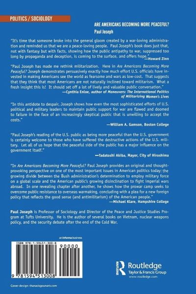 "It's time that someone broke into the general gloom created by a war-loving administration and reminded us that we are a peace-loving people. Paul Joseph's book does just that, not with fantasy but with facts, showing how the public antipathy to war, suppressed too long by propaganda and deception, is coming to the surface, and offers hope." Howard Zinn "In this antidote to despair, Joseph shows how even the most sophisticated efforts of US political and military leaders to maintain public support for war are flawed and doomed to failure in the face of an increasingly skeptical public that is unwilling to accept the costs." William A. Gamson, Boston College "An original and thought-provoking perspective on one of the most important issues in American politics today." Michael Klare, Hampshire College Are Americans becoming more peaceful -- even after the 2004 elections and the seeming affirmation of the war in Iraq? This book looks at the meaning of peace in the face of war and offers an optimistic interpretation of the public's changing views. US citizens are becoming increasingly uncomfortable with the costs of war that can be measured not just in dollars but in lives and international respect. Americans are becoming ever more resistant to government management of the "facts" surrounding war. In areas ranging from media and photojournalism to gender and casualties, Joseph exposes the reality of popular opposition to war.