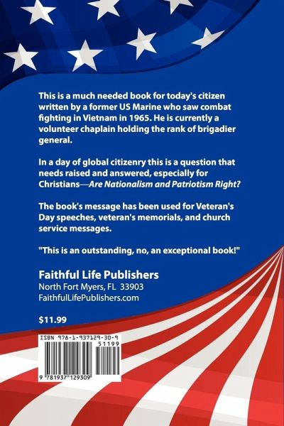 This is a much needed book for today's citizen written by a former US Marine who saw combat fighting in Vietnam in 1965. He is currently a volunteer chaplain holding the rank of brigadier general. In a day of global citizenry this is a question that needs raised and answered, especially for Christians--Are Nationalism and Patriotism Right? The book's message has been used for Veteran's Day speeches, veteran's memorials, and church service messages. "This is an outstanding, no, an exceptional book!"