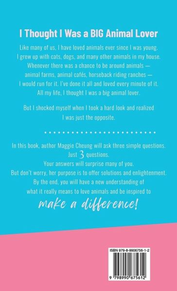 Did you grow up believing you are an animal lover? What if you abused animals but didn't know it? "Are You an Animal Lover or Abuser?" author Maggie Cheung takes you on an enlightening journey of self-discovery through three simple yet eye-opening questions. Cheung's mission is clear: to challenge the status quo of believing we are animal lovers when, in fact, we might be just the opposite. Drawing from surprisingly simple logic, she unveils the reality that many of us may unknowingly contribute to animal abuse. But fear not, for Cheung doesn't leave you stranded in guilt. Instead, she offers a compassionate solution and invites you to re-consider your next decision! Through her efforts, Cheung strives to shift corporate decision-makers away from the harmful exploitation associated with animal entertainment, steering projects towards animal welfare and ethical treatment. Now, it's your turn to pick up the mantle. Join Cheung on this transformative journey as she empowers you to reassess what it truly means to be an animal lover. Let "Are You an Animal Lover or Abuser?" be your guide as you embark on a mission to change not only your perspective but also the world around you. Are you ready to explore the first step towards a kinder world for animals?