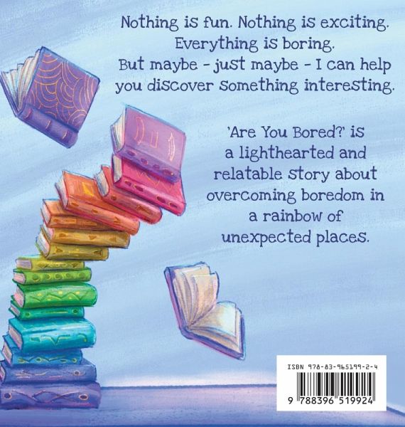 Are you bored? That's okay. Let's fix it. In Are You Bored?, the narrator speaks directly to the child and guides them through a variety of simple ideas to try when boredom shows up - but none of them quite solve the problem. They help a little, but they're not enough. And that's when the book reveals the real answer: books. Reading becomes the gateway to unlimited possibilities - a way to travel anywhere, become anyone, and explore worlds where everything is possible. For every child who has ever felt boredom slowly creeping in - at home, at school, on a long afternoon, or on holiday - this book is a gentle invitation to open a story and step into a world where curiosity wakes up, imagination takes over, and boredom quietly disappears.