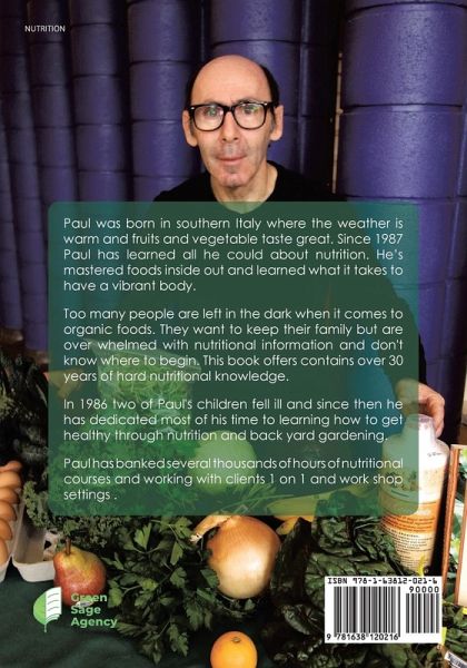 Paul was born in southern Italy where the weather is warm and fruits and vegetables taste great. Since 1987, Paul has learned all he could about nutrition. He's mastered foods inside and out and he's also learned what it takes to have a vibrant body. Too many people are left in the dark when it comes to organic foods. They want to keep their family healthy but are overwhelmed with nutritional information and don't know where to begin. This book offers a solution for people who are seeking practical ways to help their family get healthy without getting lost in a sea of conflicting information. This book contains over thirty years of hard earned nutritional knowledge. In 1986, two of Paul's children fell ill and since then he has dedicated most of his time to learning how to get healthy through nutrition and backyard gardening. Paul has banked thousands of hours of nutritional courses and working one on one with clients and in workshop settings.