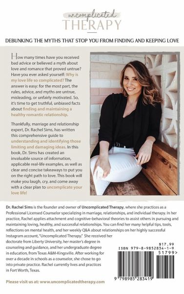 If you could uncomplicate your love life, would you do it? Well, look no further! Marriage and relationship expert, Dr. Rachel Sims, has written this comprehensive guide to understanding and identifying the limiting and damaging myths that prevent many of us from experiencing fulfilling relationships. In this book, Dr. Sims provides an invaluable source of information, applicable real-life examples, as well as clear and concise takeaways to put you on the right path to finding and keeping love. This book will make you laugh, cry, and come away with a clear plan to uncomplicate your love life!