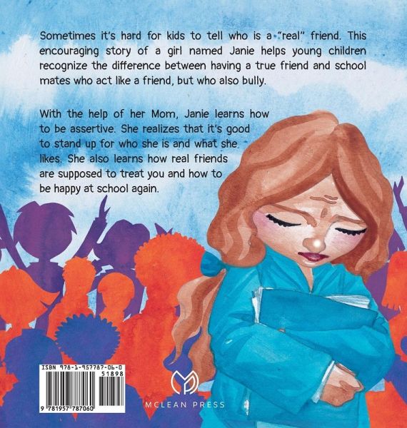 Sometimes it's hard for kids to tell who is a "real" friend. This encouraging story of a girl named Janie helps young children recognize the difference between having a true friend and school mates who act like a friend, but who also bully. With the help of her Mom, Janie learns how to be assertive. She realizes that it's good to stand up for who she is and what she likes. She also learns how real friends are supposed to treat you and how to be happy at school again.