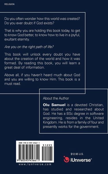 Do you often wonder how this world was created? Do you ever doubt if God exists? That is why you are holding this book today, to get to know God better, to know how to live in a joyful, exultant eternity. Are you on the right path of life? This book will unlock every doubt you have about the creation of the world and how it was formed. By reading this book, you will learn a great deal of information. Above all, if you haven't heard much about God and you are willing to know Him. This book is a must read.