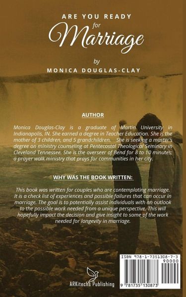 Why was the book written: This book was written for couples who are contemplating marriage. It is a check list of experiences and possible failures that can occur in marriage. The goal is to potentially assist individuals with an outlook to the possible work needed from a unique perspective. This will hopefully impact the decision and give insight to some of the work needed for longevity in marriage,
