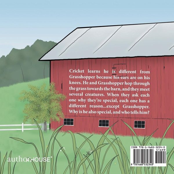 Cricket learns he is different from Grasshopper because his ears are on his knees. He and Grasshopper hop through the grass towards the barn, and they meet several creatures. When they ask each one why theyre special, each one has a different reason...except Grasshopper. Why is he also special, and who tells him?