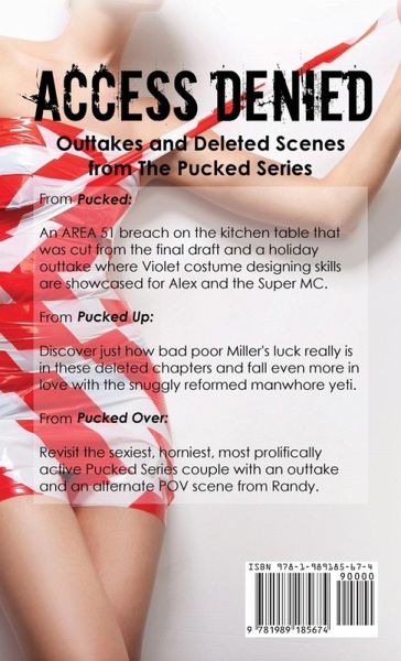 A collection of outtakes, deleted scenes, and cut chapters from your favorite Pucked Series characters. From Pucked: An Area 51 breach on the kitchen table that was cut from the final draft, plus a holiday outtake showcasing Violet's exemplary Super MC costume design skills. From Pucked Up: Discover just how bad poor Miller "Buck" Butterson's lukc really is in these deleted chapters, and fall even more in love with the snuggly, reformed manwhore. From Pucked Over: Revisit the sexiest, horniest and most prolifically active couple with outtakes and alternative POV's from Randy Ballistic. From Forever Pucked: Check out a never before seen outtake, in which Violet defends her Area 51 position, and get a sneak peek at the first chapter of the Pucked sequel.