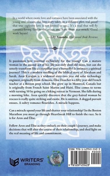 Hollywood Book ReviewsIn a world where exotic love and romance have been associated with the young and vibrant, this love story takes on a different plot, real proof that true explosive love is not limited to age... It's a read that will fly romance-loving fans to the moon and leave them star-struck. Good work Sayam! - Lily Amanda, Hollywood Book ReviewsAbout the BookIs passionate love reserved exclusively for the young? Can a mature woman in the second act of her life not only shed old skins, but can she utterly transform like a caterpillar into a butterfly? Is intimacy a spiritual journey? This is a modern retelling of the biblical story of Abraham and Sarah.Aren Karajian is a widowed sixty-two year old solar technology engineer, originally from Armenia. Élise Douchet is a fifty year old French teacher at a Boston prep school. She grew up in Montreal, Canada but is originally from French Saint Martin and Haiti. Élise comes to terms with turning 50 by going on a hiking retreat in Vermont. She falls during a morning hike. Aren quickly discovers that the grey-haired woman he rescues is really quite striking and exotic. He is smitten. A dogged pursuit ensues. A sultry romance flourishes. A miracle happens.Can a miracle upend your life and shatter your relationship? In the Boston Marathon you must go through Heartbreak Hill to finish the race. So it is for Aren and Élise. Follow Aren & Élise as they embark on their couple's journey, and make decisions that will alter the course of their relationship, and shed light on the real meaning of life and commitment.About the Author Ettenig Sayam is a second generation Haitian. Her parents came to the United States during the early days of the Civil Rights movement. Ginette grew up in New Jersey where she attended Catholic schools and later attended Drew University, a Methodist College. She studied French and eventually did a year study in Tours, France and later two years in Paris to pursue a Master's Degree in French as well as teach. Ettenig is married with two children and a dog. She lives in Massachusetts where she worked many years in the financial services industry as a compliance professional. She practiced law and did pro bono work. She now divides her time between learning chocolate making and bee keeping and taking on occasional legal assignments. --