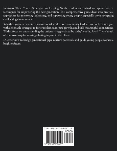 In Aren't These Youth: Strategies for Helping Youth, readers are invited to explore proven techniques for empowering the next generation. This comprehensive guide dives into practical approaches for mentoring, educating, and supporting young people, especially those navigating challenging circumstances. Whether you're a parent, educator, social worker, or community leader, this book equips you with actionable strategies to foster resilience, inspire growth, and build meaningful connections. With a focus on understanding the unique struggles faced by today's youth, Aren't These Youth offers a roadmap for making a lasting impact in their lives. Discover how to bridge generational gaps, nurture potential, and guide young people toward a brighter future.