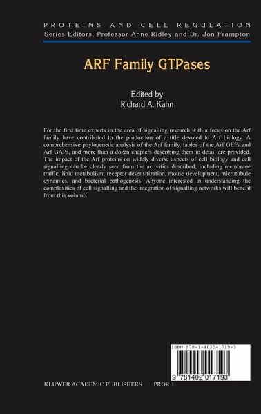 For the first time experts in the area of signalling research with a focus on the ARF family have contributed to the production of a title devoted to ARF biology. A comprehensive phylogenetic analysis of the ARF family, tables of the ARF GEFs and ARF GAPs, and more than a dozen chapters describing them in detail are provided. The impact of the ARF proteins on widely diverse aspects of cell biology and cell signalling can be clearly seen from the activities described; including membrane traffic, lipid metabolism, receptor desensitization, mouse development, microtubule dynamics, and bacterial pathogenesis. Anyone interested in understanding the complexities of cell signalling and the integration of signalling networks will benefit from this volume.