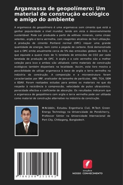 A argamassa de geopolímero é uma argamassa sem cimento que está a ganhar popularidade a nível mundial, tendo em vista o desenvolvimento sustentável. Pode ser produzida a partir de aditivos minerais, como cinzas volantes, argila e terra vermelha, com reagentes alcalinos de fácil utilização. A produção de cimento Portland normal (OPC) requer uma grande quantidade de energia, bem como a pegada de carbono. Está demonstrado que o OPC emite anualmente cerca de 5% das emissões globais de CO2, o que equivale a quase mais de ¿ tonelada de emissões de CO2 por cada tonelada de produção de OPC. A argila e o solo vermelho são a melhor seleção para isso e ambos são utilizáveis como materiais de construção ecológicos também disponíveis na localidade. Assim, este livro mostra a possibilidade de utilizar argamassa à base de argila e terra vermelha na indústria da construção. A composição e a microestrutura foram caracterizadas por XRF, analisador de tamanho de partículas, XRD, TGA, SEM e EDAX. Foram realizados estudos para ambos os materiais no que diz respeito à resistência à compressão, velocidade de pulso ultrassónico, porosidade efectiva e coeficiente de absorção. Os resultados indicaram que a argamassa de geopolímero com argila e terra vermelha pode ser utilizada como material de construção alternativo na indústria da construção.