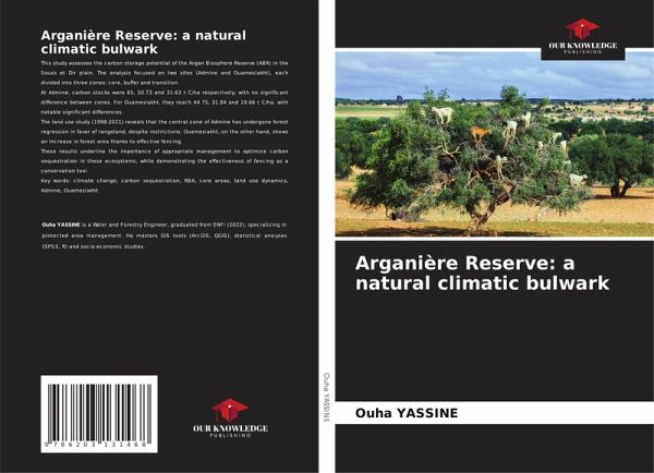 This study assesses the carbon storage potential of the Argan Biosphere Reserve (ABR) in the Souss et Dir plain. The analysis focused on two sites (Admine and Ouameslakht), each divided into three zones: core, buffer and transition.At Admine, carbon stocks were 65, 50.73 and 31.63 t C/ha respectively, with no significant difference between zones. For Ouameslakht, they reach 44.75, 31.84 and 19.66 t C/ha, with notable significant differences.The land use study (1998-2021) reveals that the central zone of Admine has undergone forest regression in favor of rangeland, despite restrictions. Ouameslakht, on the other hand, shows an increase in forest area thanks to effective fencing.These results underline the importance of appropriate management to optimize carbon sequestration in these ecosystems, while demonstrating the effectiveness of fencing as a conservation tool.Key words: climate change, carbon sequestration, RBA, core areas, land use dynamics, Admine, Ouameslakht