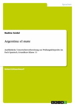 Unterrichtsentwurf aus dem Jahr 2011 im Fachbereich Didaktik - Spanisch, Note: 1,5, Sächsische Bildungsagentur Leipzig, Veranstaltung: Fachdidaktik Spanisch, Sprache: Deutsch, Abstract: Im Rahmen der Entwicklung einer differenzierten Kommunikations- und Diskursfähigkeit sollen die Schüler der gymnasialen Oberstufe im Bereich der Rezeption Texte selbstständig lesen können, indem sie Lesestil und -tempo verschiedenen Texten und Zwecken anpassen und geeignete Nachschlagewerke selektiv nutzen. Im Bereich der Produktion sollen sie die so erhaltenen Informationen auch wiedergeben können. Dies wird durch die Textbearbeitung im ersten Teil der Unterrichtseinheit verfolgt.Zur Förderung einer interkulturellen Handlungsfähigkeit sollen Schüler grundlegende Kenntnisse in Bezug auf spanischsprachige Kulturen, Einsichten in kulturspezifische Denkmuster, in Traditionen und Verhaltensmuster erwerben. Sie sollen über eine gewisse kulturelle Sensibilität verfügen, um mit Angehörigen hispanophonerKulturen angemessen interagieren zu können .Konkret auf die Lernbereiche bezogen bedeutet dies, dass sich die Schüler im Anwenden von Verstehens- und Texterschließungsstrategien üben sowie Strategien zum produktiven Sprachgebrauch trainieren (Lernbereich 1). Hierfür sind wiederum das Beherrschen von Morphologie und Syntax der spanischen Sprache sowie das Verfügen über einen erweiterten Wortschatz (Lernbereich 2) zu den im Lehrplan aufgeführten Themen unabdingbar. Das in dieser Unterrichtseinheit behandelte Thema "El mate" bzw. Argentinien im Allgemeinen wird so explizit nicht im Sächsischen Lehrplan für Gymnasien aufgeführt. Dieser fordert im Lernbereich 3 (Texte und Themen) für die Jahrgangsstufen 11/12 Grundkurs auf relativ offener Basis die Anwendung von Sprach- und Sachwissen zum Themenbereich HISPANOAMÉRICA, wobei sich auf zwei ausgewählte Länder mit unterschiedlicher Historie beschränkt werden soll und Wissen zur geographischen, politischen und wirtschaftlichen Situationvermittelt als auch die ethnische und soziale Lage beleuchtet werden sollen . Dies wird Schritt für Schritt im Zuge der gesamten Unterrichtsreihe zum Cono Sur mit Schwerpunkt auf Argentinien verfolgt. Besonderer Wert wird auch auf das Kennenlernen anderer Wert- und Normvorstellungen sowie das damit verbundene Training von Empathie und Perspektivwechsel gelegt . Letzteres soll vor allem durch die Anwendungsaufgabe im zweiten Teil der Stunde geschehen.