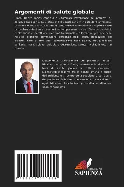 Global Health Topics continua a esaminare l'evoluzione dei problemi di salute, degli oneri e delle sfide che la popolazione mondiale deve affrontare. La salute in tutte le sue forme fisiche, mentali e sociali viene esplorata con particolare enfasi sulle questioni contemporanee, tra cui: Disturbo da deficit di attenzione e iperattività, medicina tradizionale e alternativa, gestione delle malattie croniche, commozione cerebrale negli atleti, mitigazione dei disastri, cure di fine vita, comunicazione nella sanità, disuguaglianze sanitarie, malnutrizione, suicidio e depressione, salute mobile, infortuni e povertà.