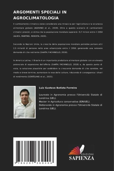 Il cambiamento climatico viene considerato una minaccia per l'agricoltura e la sicurezza alimentare globale (AGOVINO et al., 2019). Oltre a questo scenario di cambiamenti climatici previsti, si stima che la popolazione mondiale supererà i 9,7 milioni entro il 2050 (ALVES, MARTINS, REBOITA, 2020). Secondo le Nazioni Unite, la crescita della popolazione mondiale potrebbe portare altri 2,5 miliardi di persone nelle aree urbanizzate entro il 2050, generando una notevole domanda di cibo nutriente (SAATH; FACHINELLO, 2018). In America Latina, il Brasile è un importante produttore alimentare globale con un elevato potenziale di espansione dell'offerta (SAATH; FACHINELLO, 2018) e, da questo punto di vista, la soluzione plausibile per soddisfare la crescente domanda di cibo sarebbe, nel medio e breve termine, aumentare le rese delle colture, riducendo di conseguenza i divari di rendimento (SENTELHAS et al., 2015).
