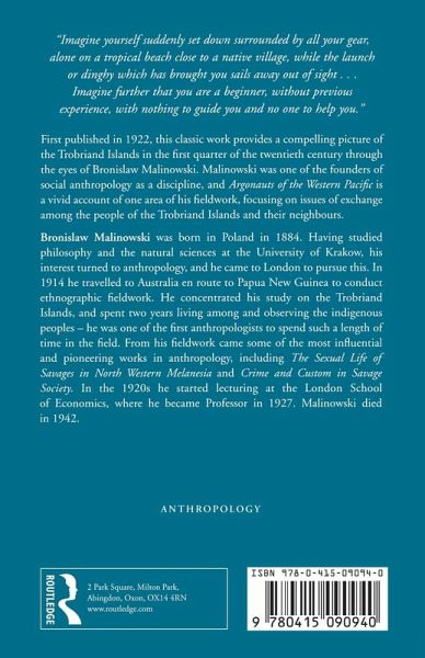 First published in 1922, this classic text examines the extensive and complex trading system maintained by the Trobriand Islanders. While the main theme is economics and social organization, the power of magic, mythology and folklore are also examined.