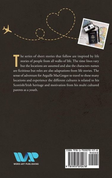 The series of short stories that follow are inspired by life stories of people from all walks of life. The time lines vary but the locations are assumed and also the characters names are fictitious but roles are also adaptations from life stories. The sense of adventure for Arguille MacGregor to travel to these many locations and experience the different cultures is related to his Scottish/Irish heritage and motivation from his multi cultured parents as a youth.