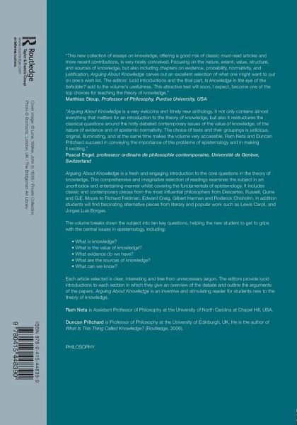 What is knowledge? What are the sources of knowledge? What is the value of knowledge? What can we know? Arguing About Knowledge offers a fresh and engaging perspective on the theory of knowledge. This comprehensive and imaginative selection of readings examines the subject in an unorthodox and entertaining manner whilst covering the fundamentals of the theory of knowledge. It includes classic and contemporary pieces from the most influential philosophers from Descartes, Russell, Quine and G.E. Moore to Richard Feldman, Edward Craig, Gilbert Harman and Roderick Chisholm. In addition, students will find fascinating alternative pieces from literary and popular work such as Lewis Caroll, Jorges Luis Borges and Paul Boghossian. Each article selected is clear, interesting and free from unnecessary jargon. The editors provide lucid introductions to each section in which they give an overview of the debate and outline the arguments of the papers. Arguing About Knowledge is an inventive and stimulating reader for students new to the theory of knowledge.