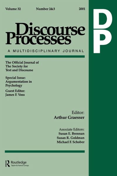 Volume 32 Number 2 & 3 2001 Contents: J.F. Voss J.A. Van Dyke Argumentation in Psychology: Background Comments. N.L. Stein E.R. Albro The Origins and Nature of Arguments: Studies in Conflict Understanding Emotion and Negotiation. M. Felton D. Kuhn The Development of Argumentative Discourse Skill. A. Reznitskaya R.C. Anderson B. McNurlen K. Nguyen-Jahiel A. Archodidou S-Y. Kim Influence of Oral Discussion on Written Argument. R.S. Bernas N.L. Stein Changing Stances on Abortion During Case-Based Reasoning Tasks. S.K. Brem J. Russell L. Weems Science on the Web: Student Evaluations of Scientific Arguments. J.F. Voss J.A. Van Dyke Narrative Structure Information Certainty Emotional Content and Gender as Factors in a Pseudo-Jury Decision Making Task.