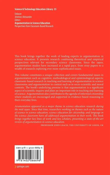 "Argumentation in Science Education ... is a comprehensive and authoritative handbook on 'school scientific argumentation' ... . The book is principally aimed at researchers in didactics of science ... . The book comprises theoretical, empirical, and practical approaches that have clear implications both for analyzing and for fostering argumentation processes in the science classrooms of all educational levels, including teacher education. ... provides the readers with many powerful ideas that could eventually be inspected in subsequent investigations." (A. Adúriz-Bravo, Science & Education, September, 2010)