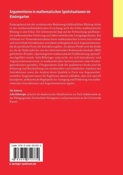 Einhergehend mit der zunehmenden Bedeutung frühkindlicher Bildung rückte in der mathematikdidaktischen Forschung auch die frühe mathematische Bildung in den Fokus. Ein Schwerpunkt liegt auf der Erforschung spielbasierter mathematischer Förderung und dabei entstehender Lerngelegenheiten. Ein Schlüssel zur Wissenskonstruktion beim mathematischen Lernen sind verbale und nonverbale Interaktionen und damit einhergehend auch Argumentationen, die als spezifische Form der Interaktion gelten. An diesem Punkt setzt die Studie an, die als Teilprojekt des von der Internationalen Bodenseehochschule (IBH) geförderten Projekts "Spielintegrierte mathematische Frühförderung (spimaf)" durchgeführt wurde. Julia Böhringer untersucht, wie sich Interaktions- und Argumentationsprozesse in mathematischen Spielsituationen unter Kindergartenkindern gestalten. Übergeordnete Ziele der qualitativen Studie sind die Erfassung und Beschreibung von strukturellen und inhaltlichen Aspekten der Interaktionen sowie die Analyse deren Qualität in Form von Argumentationstiefen. Insgesamt lassen die Ergebnisse darauf schließen, dass sich speziell konzipierte, arithmetische Regelspiele zur Anregung und Förderung von mathematischen Interaktionen und Argumentationen eignen.
