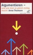 Wenn wir argumentieren, müssen wir Schlußfolgerungen ziehen und Indizien oder Belege bewerten können. Wir müssen diese Fertigkeiten aber miteinander verbinden, um jemand anderem eine wirksame Argumentation vorzuführen. Wir müssen fähig sein, auf die Argumentationen anderer zu reagieren. Die ausgewählten Beispiele stammen aus Tageszeitungen und öffentlichen Diskussionen: Tollkühne Scheinargumente der letzten Skandale (BSE-Skandal, Brent Spar), politischen Tages- und Langzeitdebatten (Ausländerpolitik, Abtreibungsdebatte, Golf-Krieg), das Kleingedruckte in Verträgen oder Skurriles (Loch Ness) nimmt Anne Thomson zum Anlaß die "Kunst des Argumentierens" theoretisch darzustellen und praktisch - immer anhand von Beispielen - einzuüben.