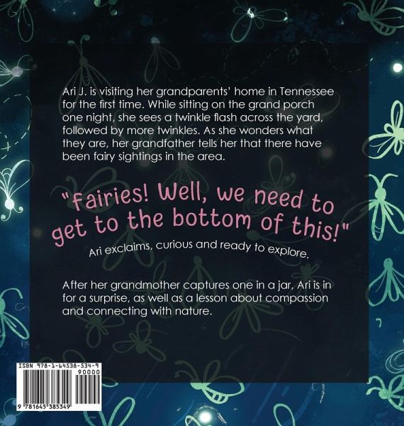 Ari J. is visiting her grandparents' home in Tennessee for the first time. While sitting on the grand porch one night, she sees a twinkle flash across the yard, followed by more twinkles. As she wonders what they are, her grandfather tells her that there have been fairy sightings in the area. "Fairies! Well, we need to get to the bottom of this!" Ari exclaims, curious and ready to explore. After her grandmother captures one in a jar, Ari is in for a surprise, as well as a lesson about compassion and connecting with nature.