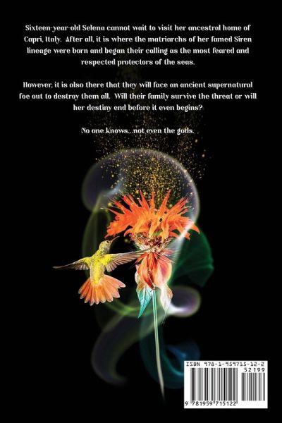 Sixteen-year-old Selena cannot wait to visit her ancestral home of Capri, Italy. After all, it is where the matriarchs of her famed Siren lineage were born and began their calling as the most feared and respected protectors of the seas. However, it is also there that they will face an ancient supernatural foe out to destroy them all. Will their family survive the threat or will her destiny end before it even begins? No one knows...not even the gods.