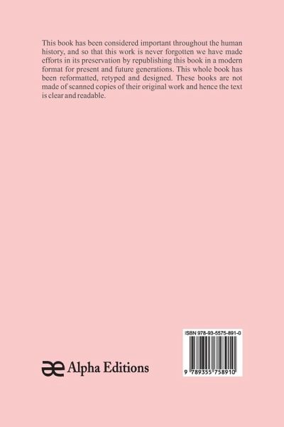 This book has been considered important throughout the human history, and so that this work is never forgotten we have made efforts in its preservation by republishing this book in a modern format for present and future generations. This whole book has been reformatted, retyped and designed. These books are not made of scanned copies and hence the text is clear and readable.