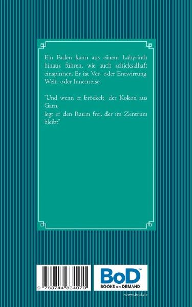Ein Faden kann aus einem Labyrinth hinaus führen, wie auch schicksalhaft einspinnen. Er ist Ver- oder Entwirrung, Welt- oder Innenreise."Und wenn er bröckelt, der Kokon aus Garn, legt er den Raum frei, der im Zentrum bleibt."