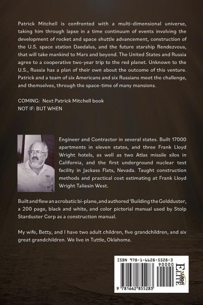 Patrick Mitchell is confronted with a multi-dimensional universe, taking him through lapse in a time continuum of events involving the development of rocket and space shuttle advancement, construction of the U.S. space station Daedalus, and the future starship Rendezvous, that will take mankind to Mars and beyond. The United States and Russia agree to a cooperative two-year trip to the red planet. Unknown to the U.S., Russia has a plan of their own about the outcome of this venture. Patrick and a team of six Americans and six Russians meet the challenge, and themselves, through the space-time of many mansions. COMING: Next Patrick Mitchell book NOT IF: BUT WHEN Engineer and Contractor in several states. Built 17000 apartments in eleven states, and three Frank Lloyd Wright hotels, as well as two Atlas missile silos in California, and the first underground nuclear test facility in Jackass Flats, Nevada. Taught construction methods and practical cost estimating at Frank Lloyd Wright Taliesin West. Built and flew an acrobatic bi-plane, and authored 'Building the Goldduster, a 200 page, black and white, and color pictorial manual used by Stolp Starduster Corp as a construction manual. My wife, Betty, and I have two adult children, five grandchildren, and six great grandchildren. We live in Tuttle, Oklahoma.