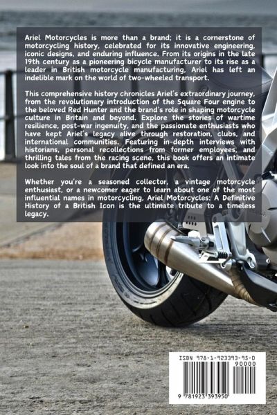 Ariel Motorcycles is more than a brand; it is a cornerstone of motorcycling history, celebrated for its innovative engineering, iconic designs, and enduring influence. From its origins in the late 19th century as a pioneering bicycle manufacturer to its rise as a leader in British motorcycle manufacturing, Ariel has left an indelible mark on the world of two-wheeled transport. This comprehensive history chronicles Ariel's extraordinary journey, from the revolutionary introduction of the Square Four engine to the beloved Red Hunter and the brand's role in shaping motorcycle culture in Britain and beyond. Explore the stories of wartime resilience, post-war ingenuity, and the passionate enthusiasts who have kept Ariel's legacy alive through restoration, clubs, and international communities. Featuring in-depth interviews with historians, personal recollections from former employees, and thrilling tales from the racing scene, this book offers an intimate look into the soul of a brand that defined an era. Whether you're a seasoned collector, a vintage motorcycle enthusiast, or a newcomer eager to learn about one of the most influential names in motorcycling, Ariel Motorcycles: A Definitive History of a British Icon is the ultimate tribute to a timeless legacy.
